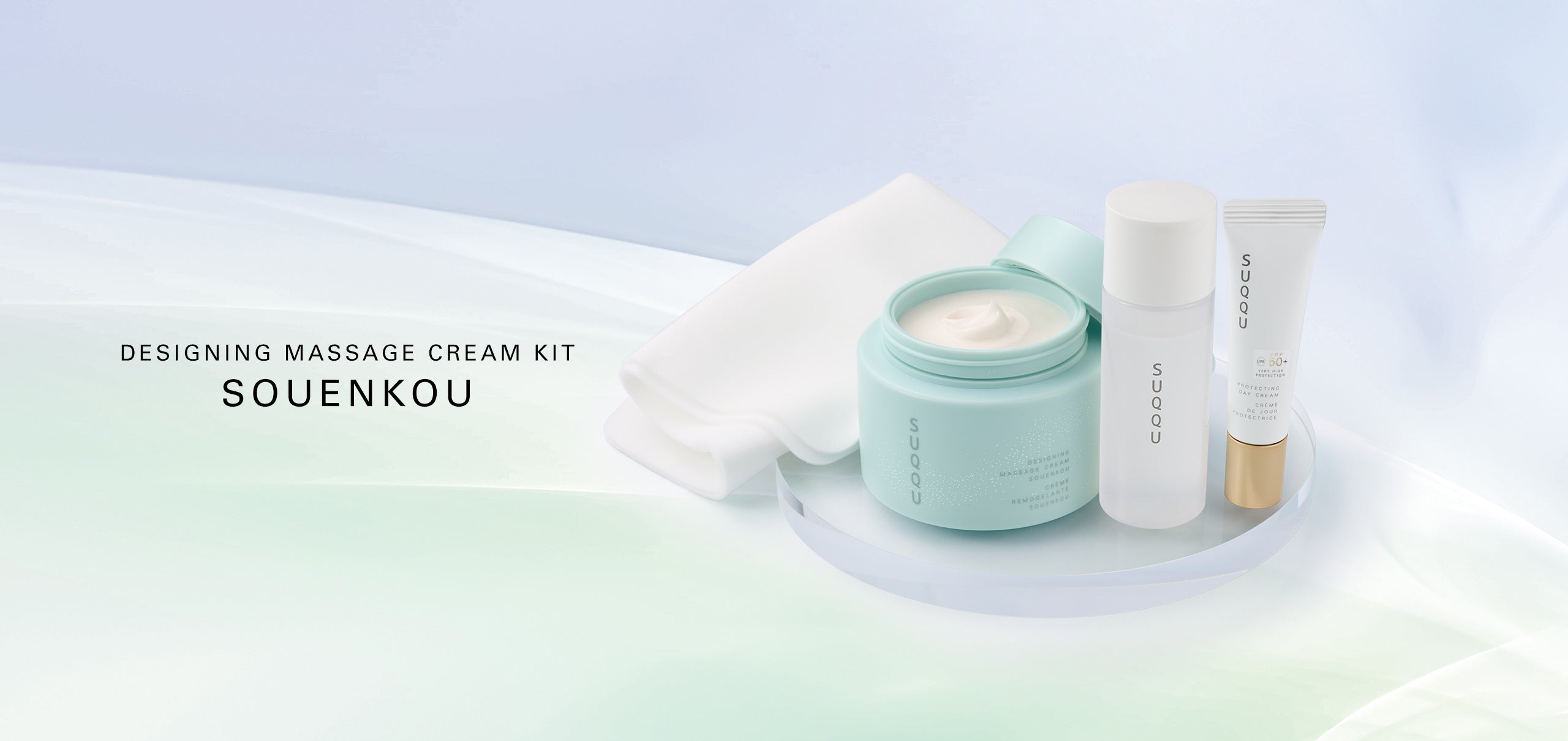 The cream used in the "backbone" of SUQQU's skincare method, the "GANKIN MASSAGE™", is now available as part of a special kit, infused with the limited-edition fragrance "SOUENKOU". This refreshing, exclusive scent is perfectly suited for the beginning of the year.